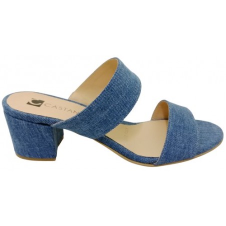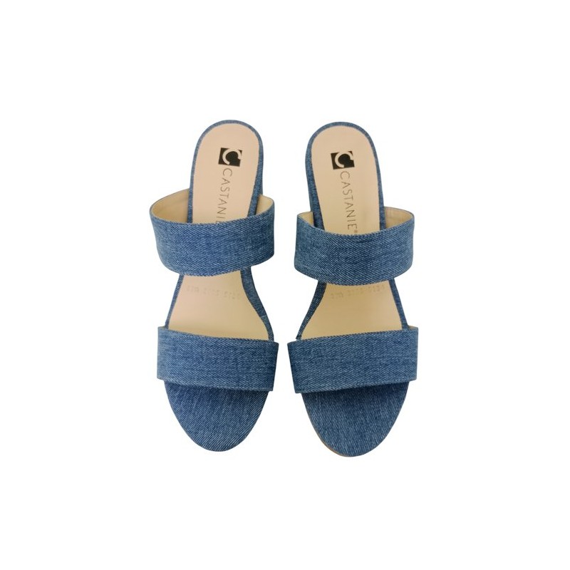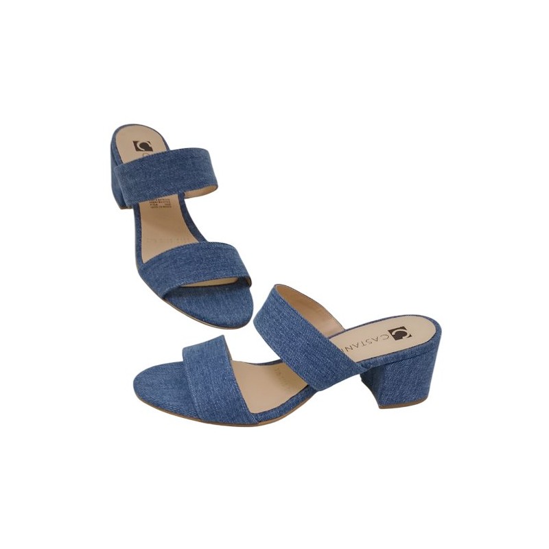 Sueco con tira de empeine ajustable en material mezclilla sintético color azul mezclilla