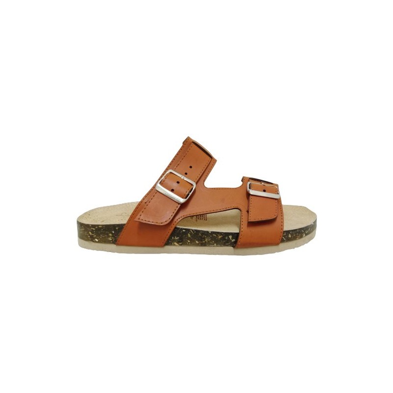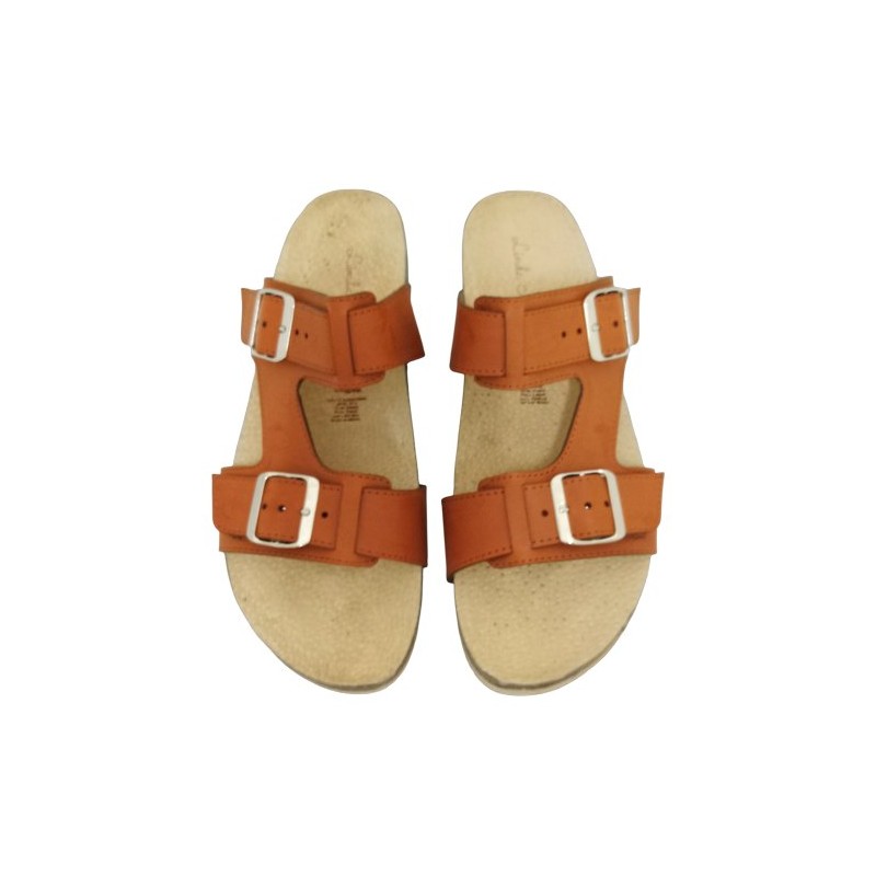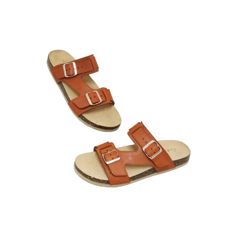 Sueco con hebillas ajustables en material sintético color camel