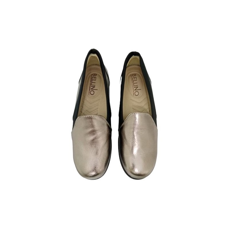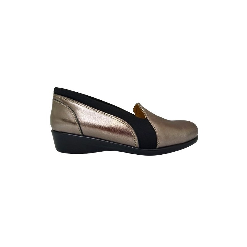 Mocasín plantilla removible y licra elástica en material piel auténtica color inox
