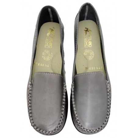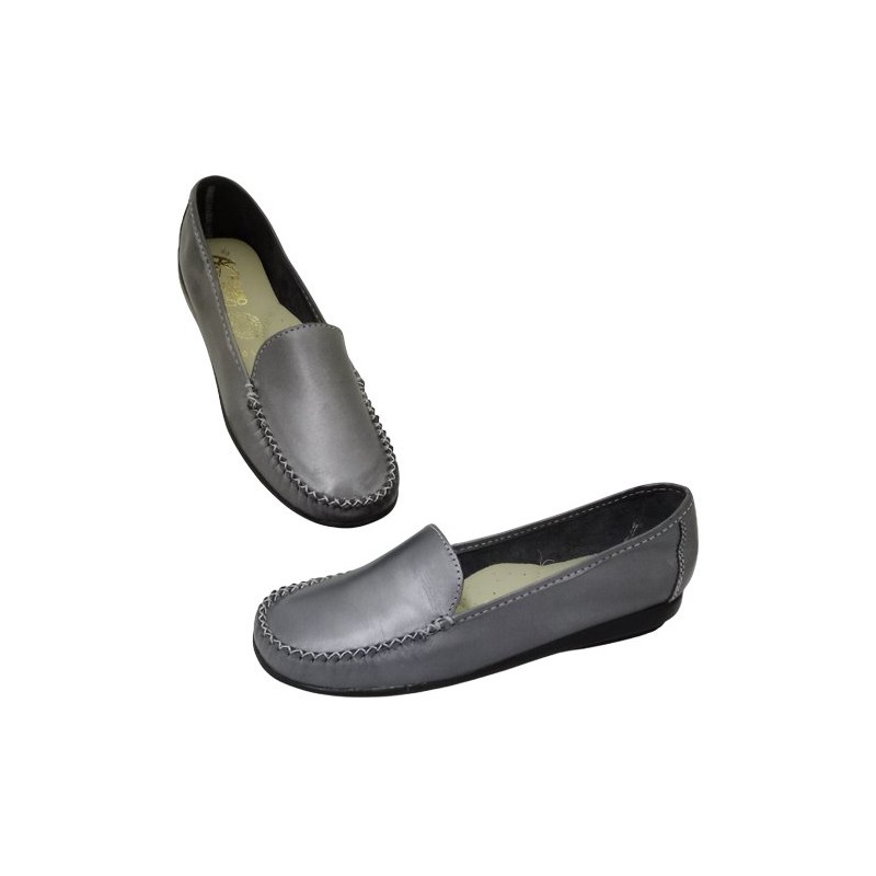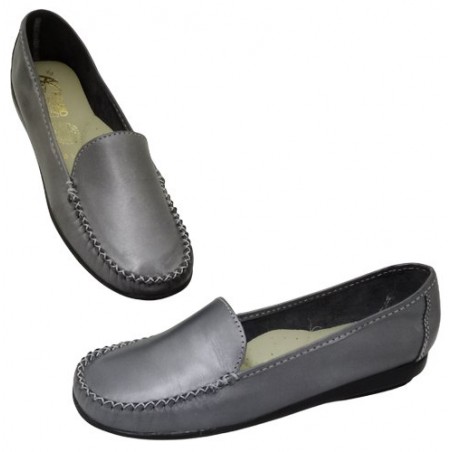 Mocasín con costuras en material piel auténtica color antimonio
