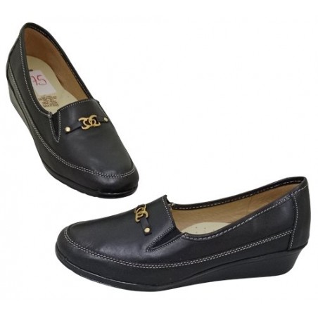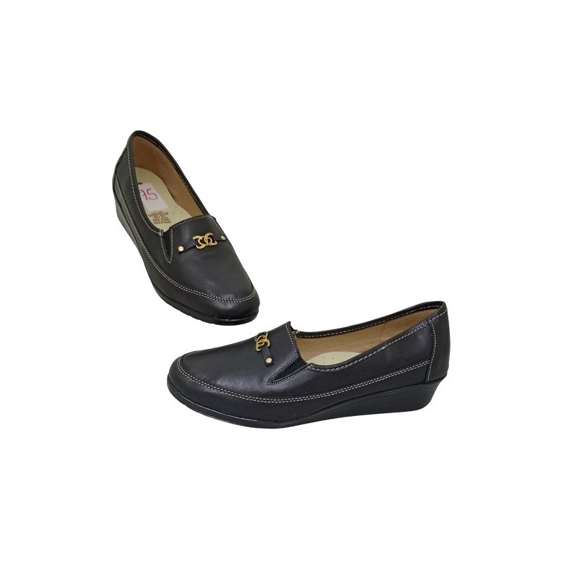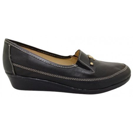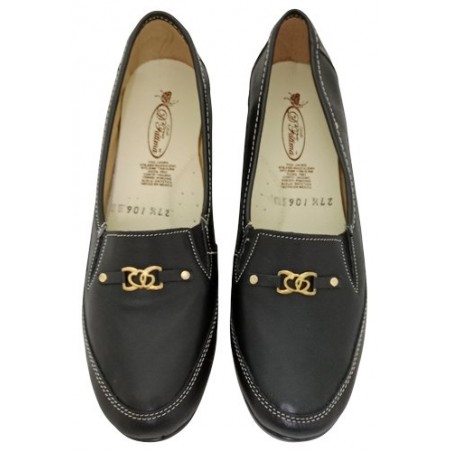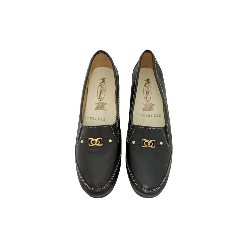 Mocasín con herraje dorado en material piel auténtica color negro