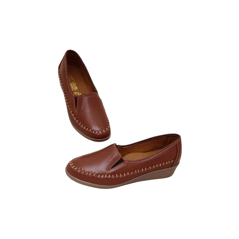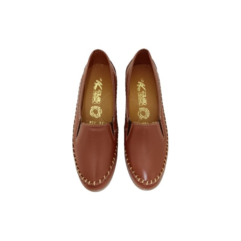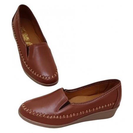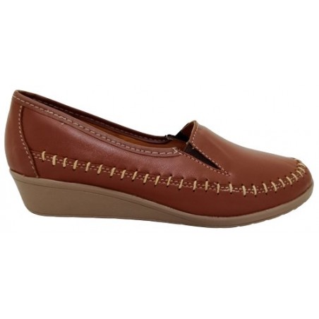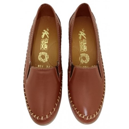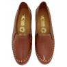 Mocasín con costuras doradas de adorno en material piel auténtica color miel
