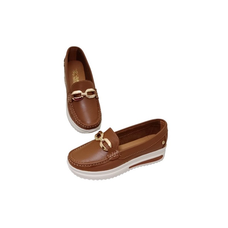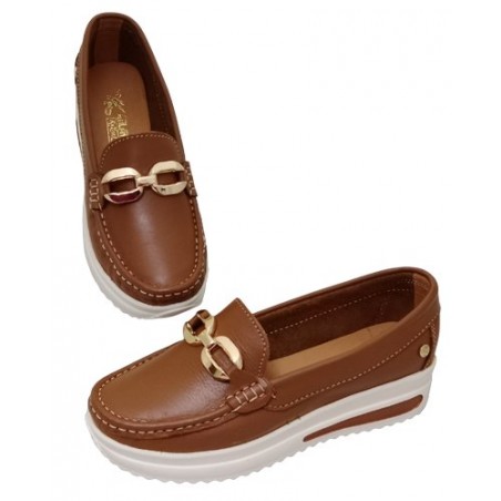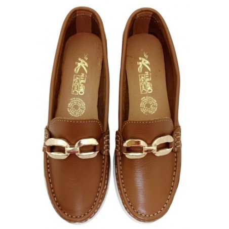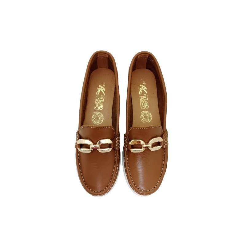 Mocasín con costuras y herraje dorado en material piel auténtica color miel