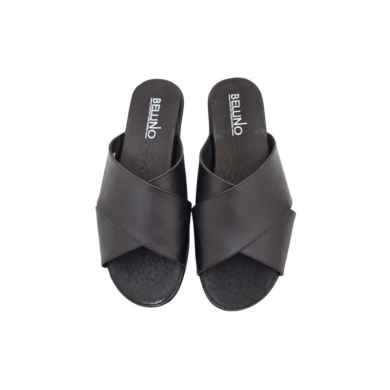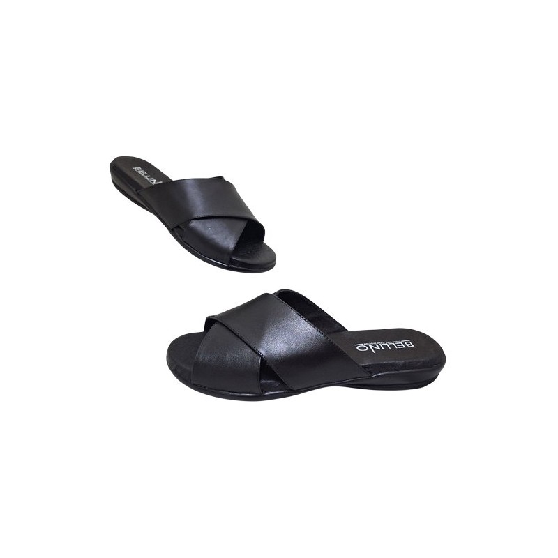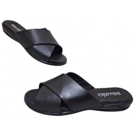 Suecodos tiras gruesas cruzadas en material piel auténtica color negro