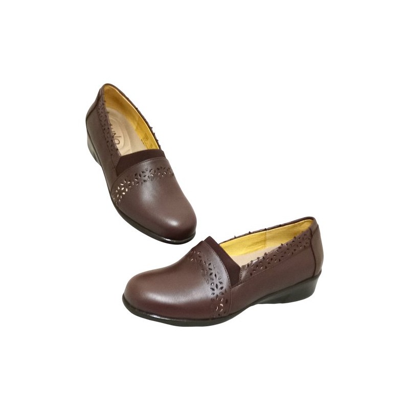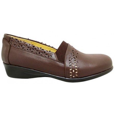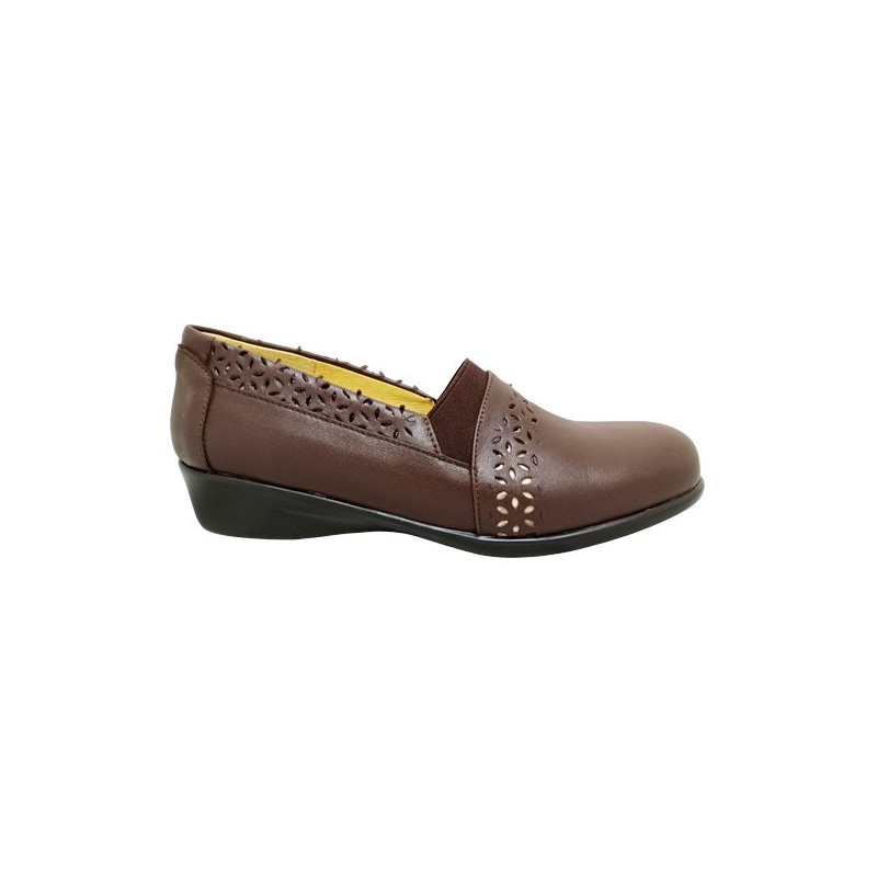 Mocasín con perforaciones y elástico en empeine en material piel auténtica color café