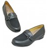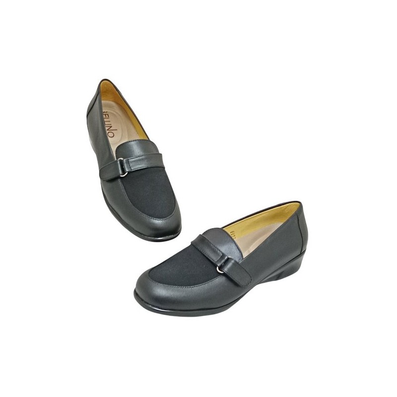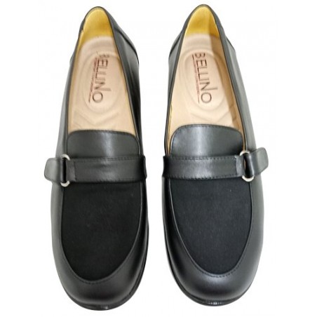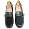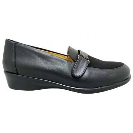 Mocasín con licra frontal y tira ajustable con velcro en material piel auténtica color negro