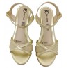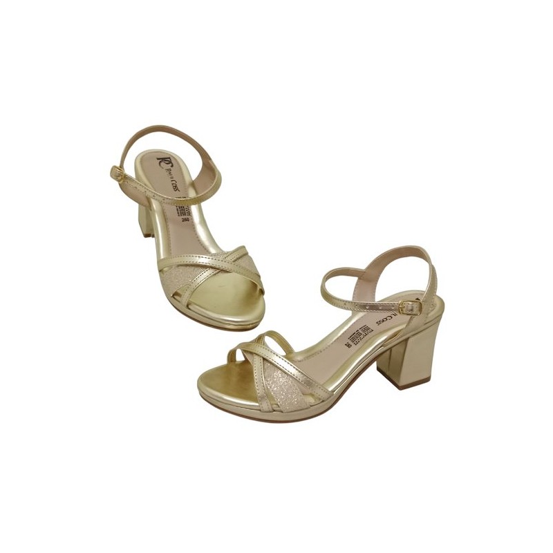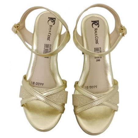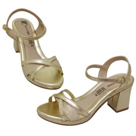 Sandalia tiras cruzadas y tira ancha con brillos en material sintético color oro