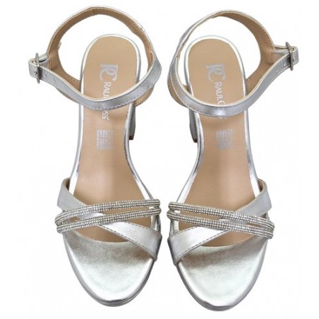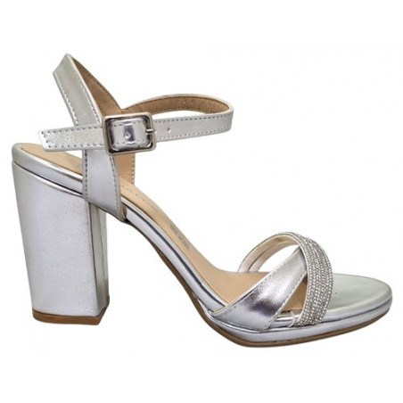 Zapatilla tiras cruzadas con brillo en material sintético color plata