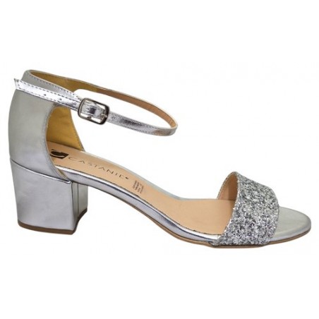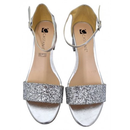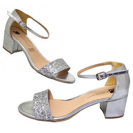 Zapatilla con brrillos en material sintético color plata