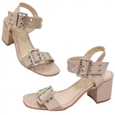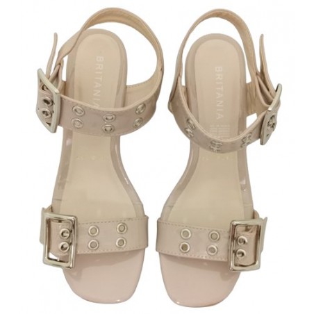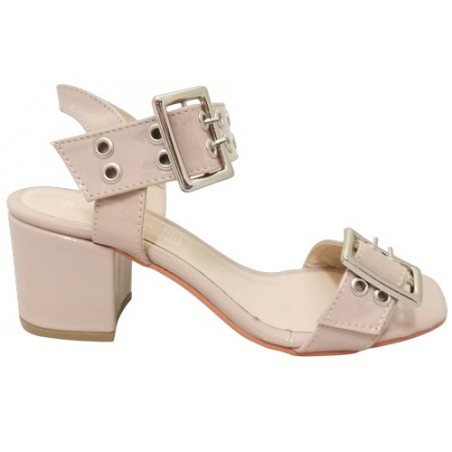 Zapatillas con hebillas y remaches en material charol sintético color maquillaje